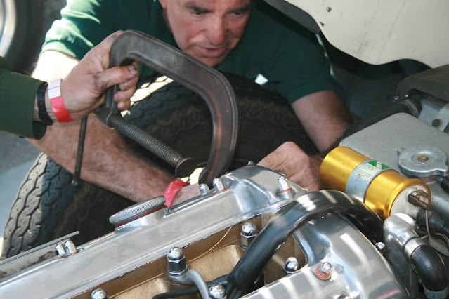 Unfortunately, on this occasion the combined efforts of the team were unable to fix the problem which was diagnosed as failed Crane Ignition system. Lynn finally persuaded us that there was nothing to be gained by delaying the drive for the rest of the group, so we left him and Mary with plans to hire a U-haul truck and trailer, load the car, and drive it back home to Boise. We were very sorry to see their Oil Leak end in this way, and wish them a safe trip home.